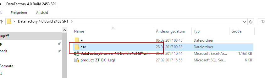 When an http-connection is created, a .csv file is generated with all numeric values recorded in the products of the selected hierarchical level. The .csv file is saved in the csv folder in the source directory of your DataFactory. If you are using a DataFactory database on your own SQL server, a connection with Excel will be established that updates directly over the server.