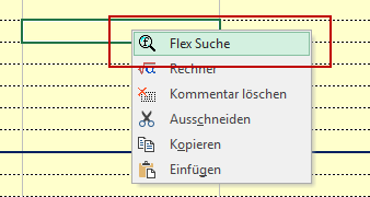 1) Right-click inside the cell in which you wish to enter a value with the help of FlexSearch and select the FlexSearch option.
