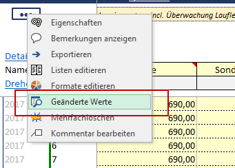 If you have entered, changed or deleted values within a product table, you may choose to display the changes made.