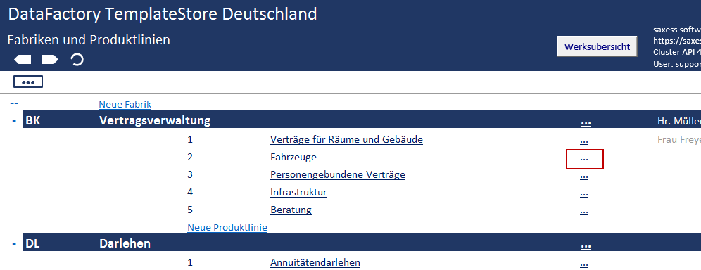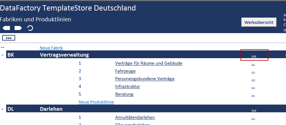 1) Click on the …-ActionLink in the Factory and Product Lines view.