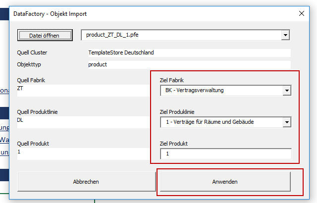 4) Choose the template/product (.pfe-file) you wish to import and click on OK.