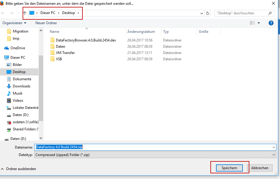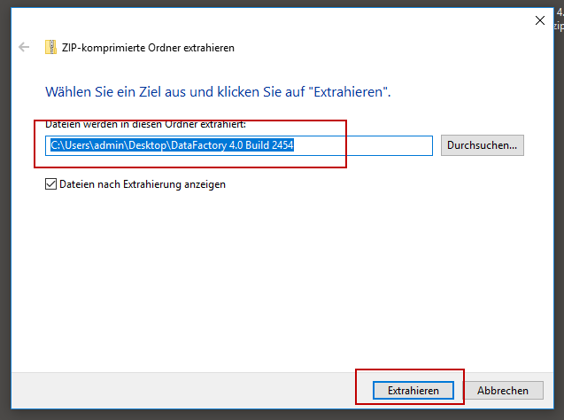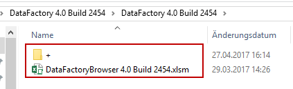 3) In the selected folder you will now find the folder DataFactory X.0 Build XXXX, which itself contains two items. One folder is titled + and the other DataFactory Excel client.