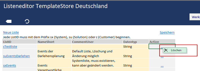 1) Click on the ActionLink of the list you wish to delete and select the Delete option.