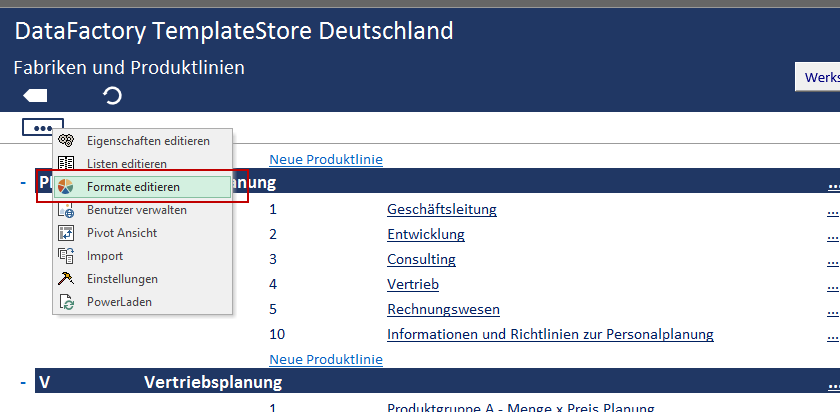 1) Navigate to the factories and product lines overview and click on the ActionLink.