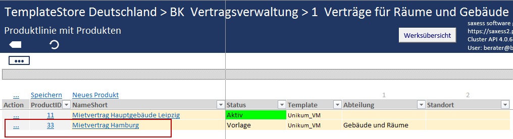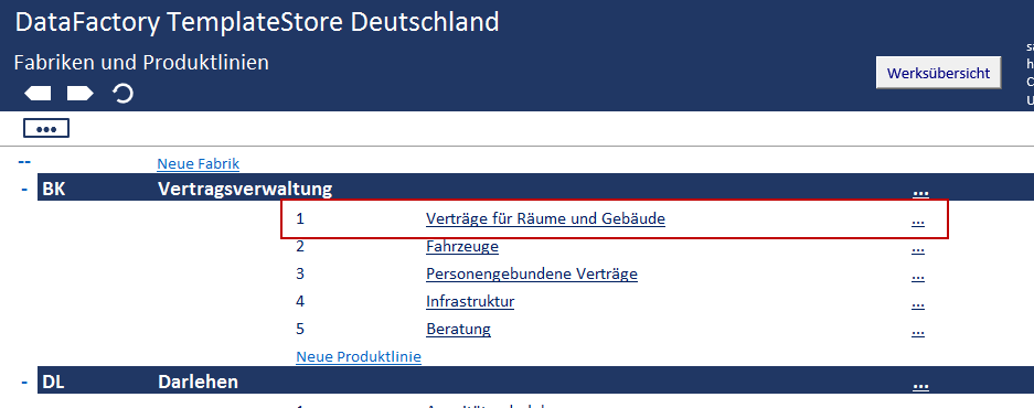 A new product is always based on an already existing product; as a general rule, it is based on a template. To create a new product, proceed as follows: