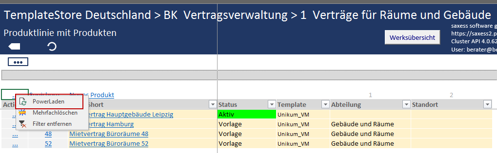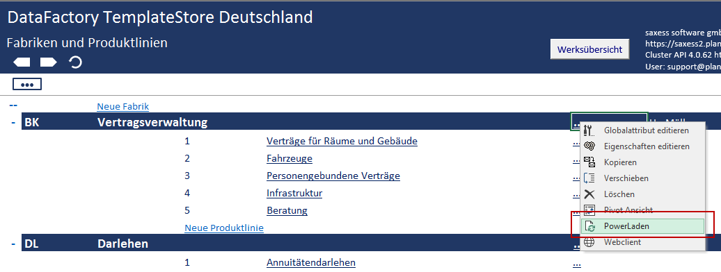 You can execute Powerload on various levels of your cluster. Depending on the level on which you choose to execute Powerload, the number of products to choose from may be reduced.