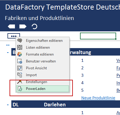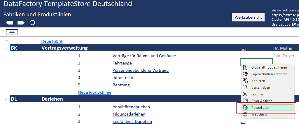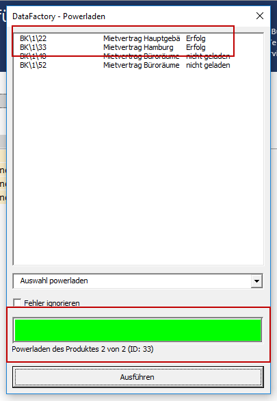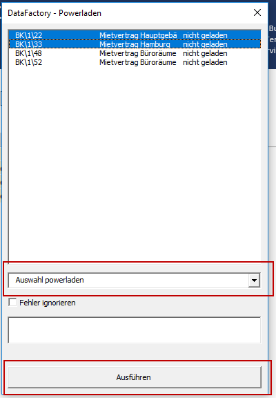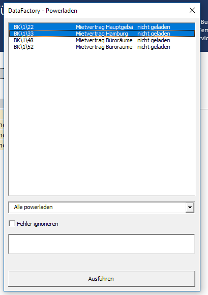 The Powerload function is especially useful when you wish to use data imported into DataFactory from other applications as a basis for further calculations. The Powerload function accesses, calculates and saves all products automatically. The following Powerload options are available: