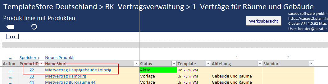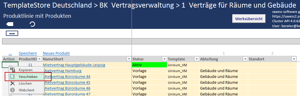 1) Navigate to the product you wish to relocate and click on the ActionLink in the Action column.