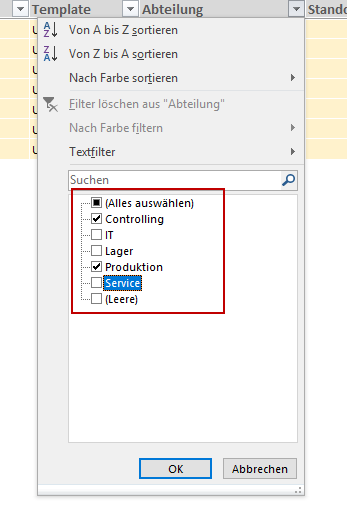 2) Select one or more values to filter by and click OK to confirm.
