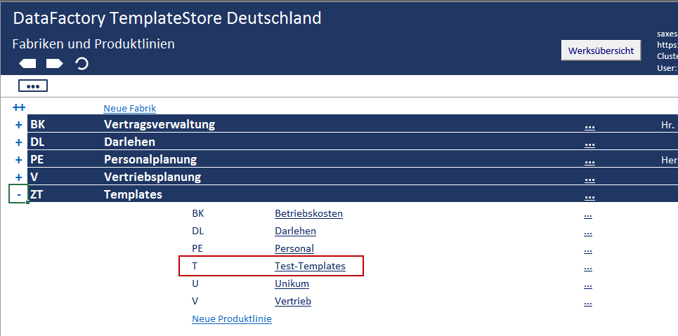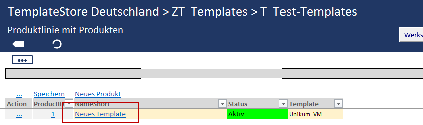 Note: It is recommended to enter a precise and descriptive name for your new template in the column “Template”. This is important for recognizing the template the next time you wish to create new products based on it.