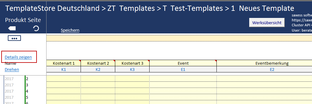 In the following section, the functions for configuring the templates are described. The description is based on a template with a vertical time axis. The steps to configure a horizontal time axis the same.
