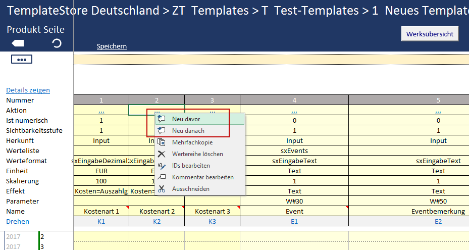 2) Click on the option New Before if you wish to create a new column in front of the current one, or on the option New After if you wish to create a new column after the current one.