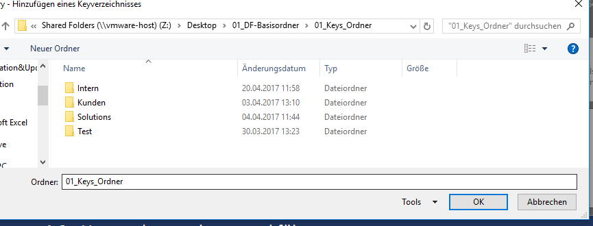 2) A new window will open, in which you can select the folder containing your key files. Select this folder and click OK.