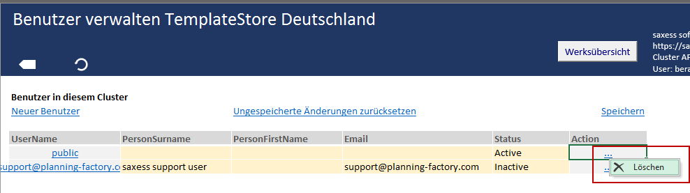 1) Select the user you wish to delete and click on the ActionLink in the Action column