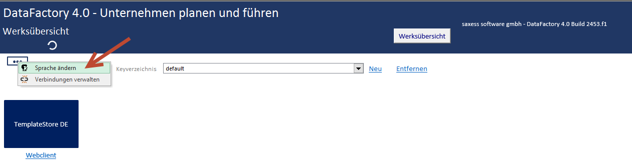 The default language for the user interface is German. In the +\i18n directory, the default language can be changed by adding an underscore (_) in front of your desired language.