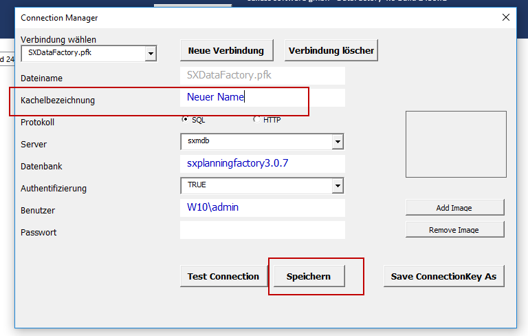 3) In the box Tile Name, type in the new name of your connection and click on the Save button to save the changes.