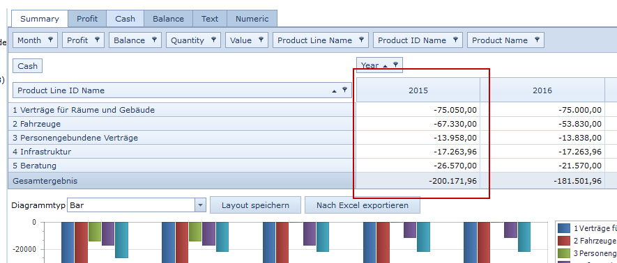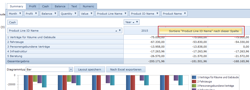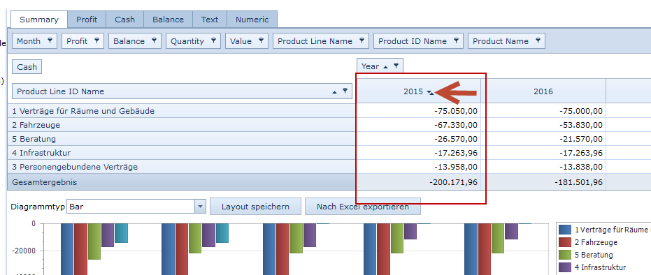 2) The line/column is now sorted in descending order. You can recognize that the column has been sorting by the two small, opposing arrows.