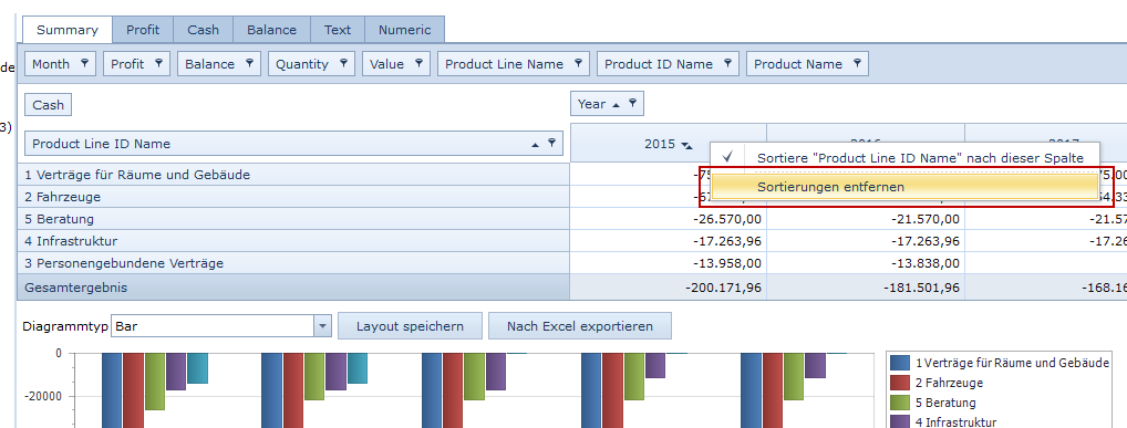 1) Right-click insde the line or row in which you wish to remove the sorting function. The Undo Sorting field will appear.
