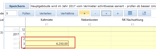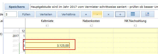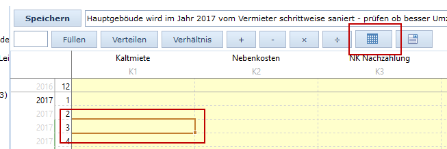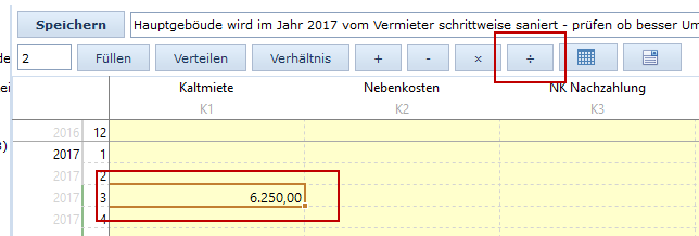 2) Highlight the cells into which the entered value is to be equally distributed and click on the Distribute Equally button.